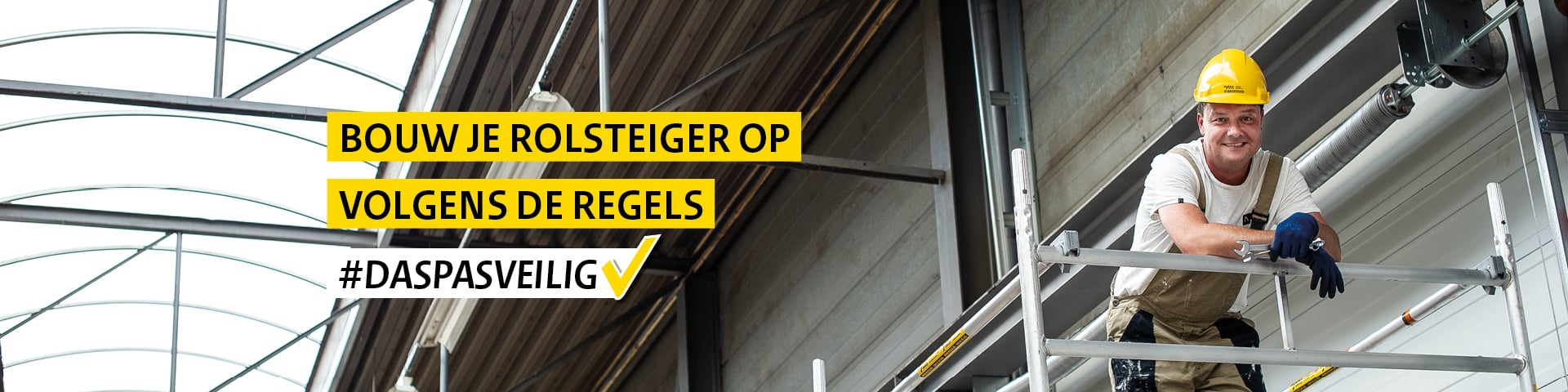 Het A-blad rolsteigers van Volandis - compleet met handige checklist - bevat duidelijke informatie over het veilig opbouwen. Als u volgens dit A-blad werkt, dan voldoet u aan de wettelijke eisen voor veilig werken met de rolsteiger. Overigens mag u de rolsteiger ook op een andere manier opbouwen dan in het A-blad staat beschreven. U moet dan wel kunnen aantonen dat u met uw eigen methode minimaal hetzelfde niveau van bescherming biedt.
